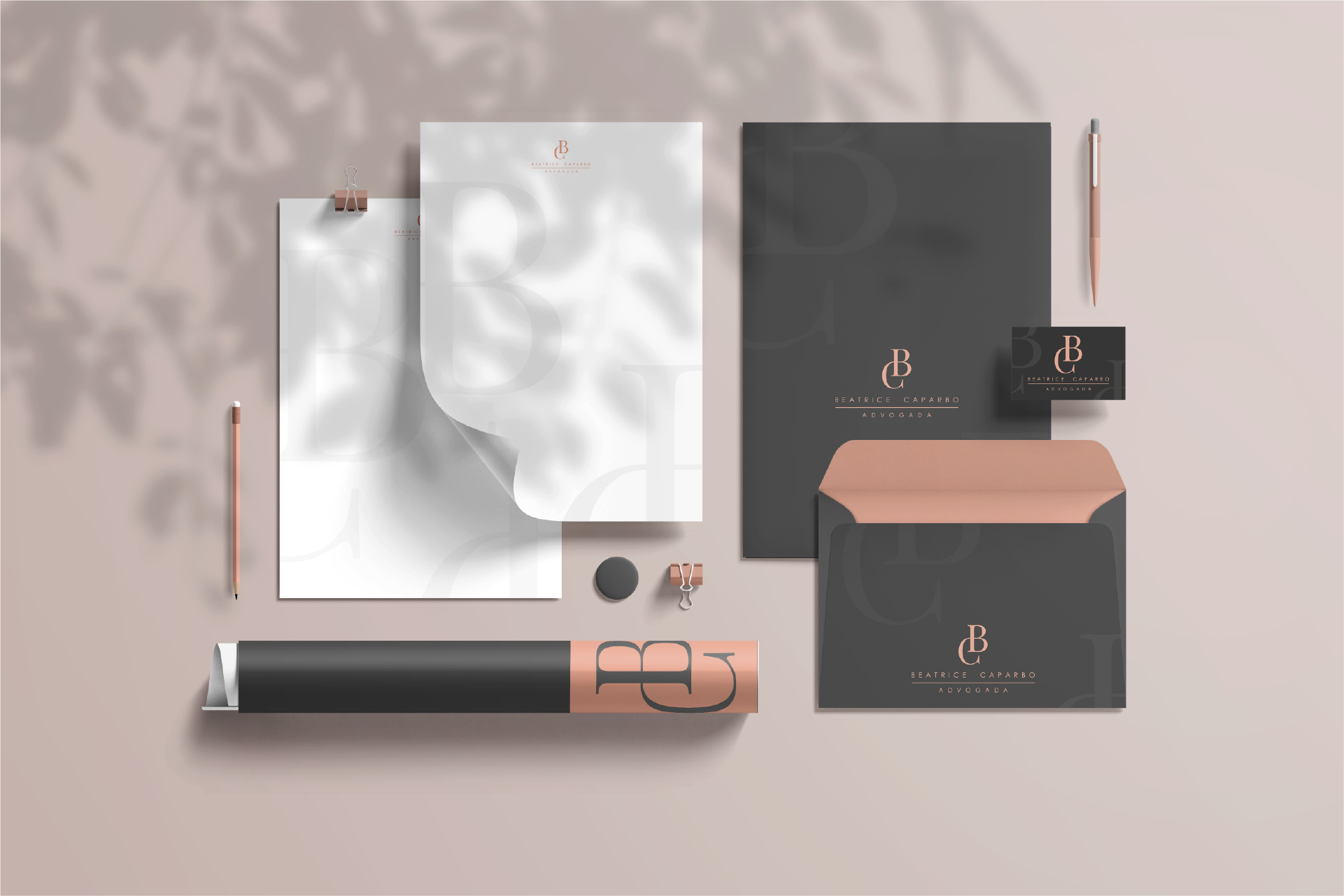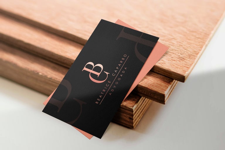 Este projeto de Identidade Visual chegou até mim com alguns desafios: criação de um logo simples (com as iniciais da cliente) e o uso da cor rosa sem transparecer falta de credibilidade, pois trata-se de uma advogada que atua na área criminal.