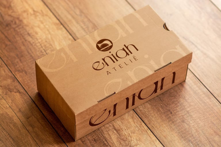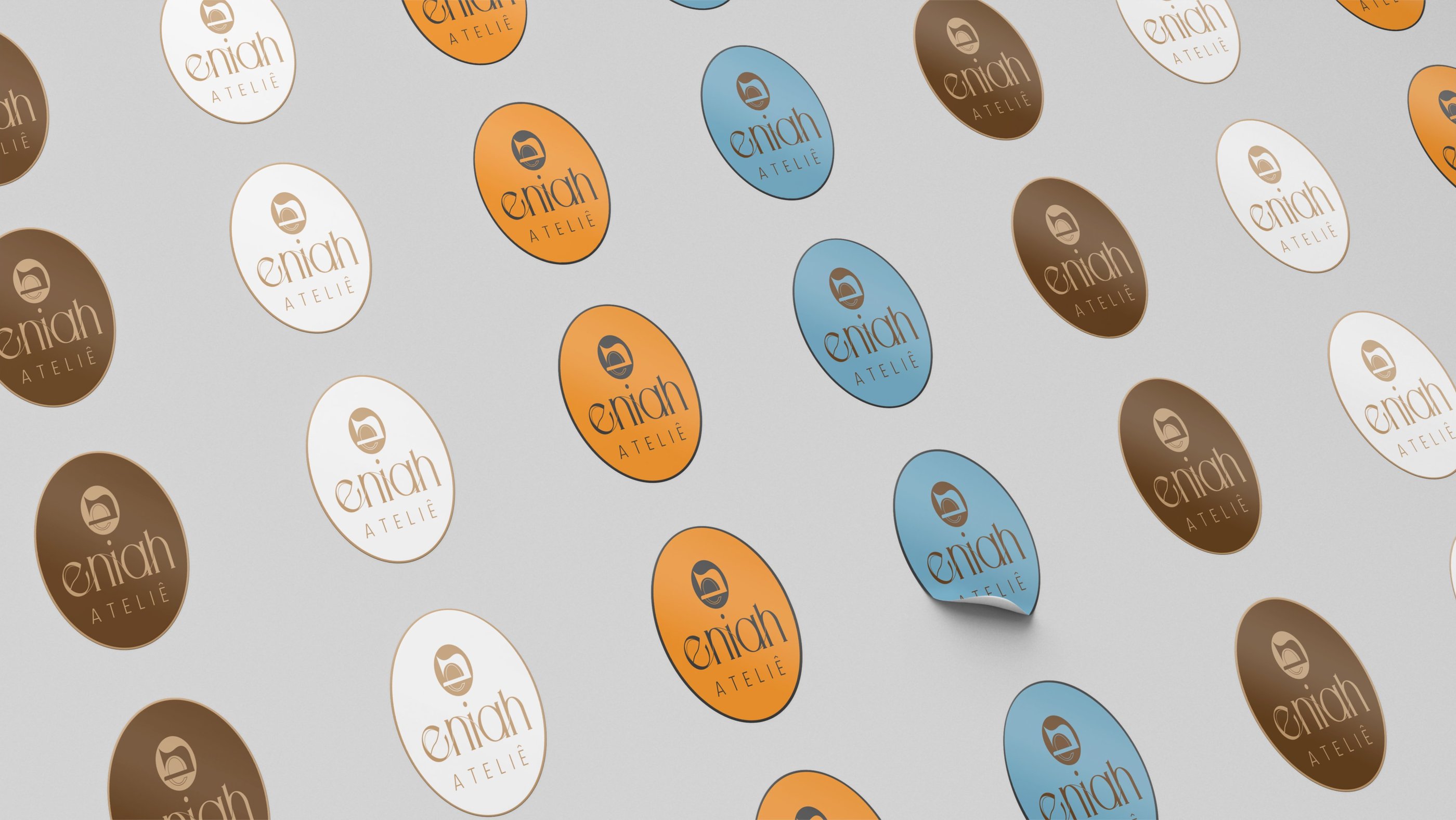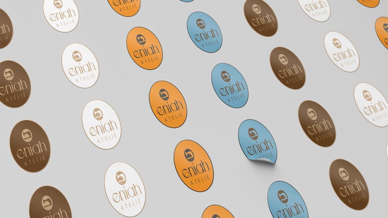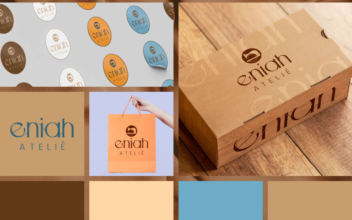 Neste projeto eu criei desde o nome da marca até a fonte que compõe o logotipo. Eniah é um neologismo e este nome foi escolhido para o ateliê por ser a forma sonora das iniciais da proprietária Noêmia Assis.