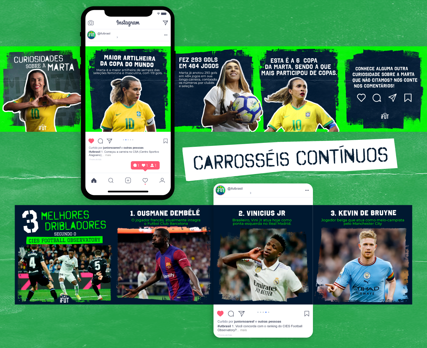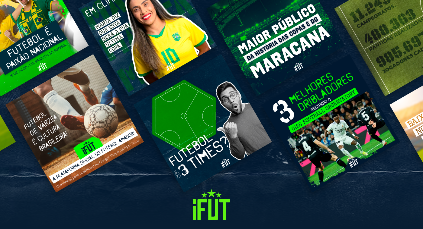 Criei a identidade visual para as redes sociais da iFUT, uma plataforma que organiza campeonatos de futebol de várzea e permite também aos jogadores acompanhar seu desempenho durante os jogos. A identidade visual reflete o espírito competitivo e comunitário do futebol amador, com elementos que reforçam a conexão entre a tecnologia e a paixão pelo esporte.