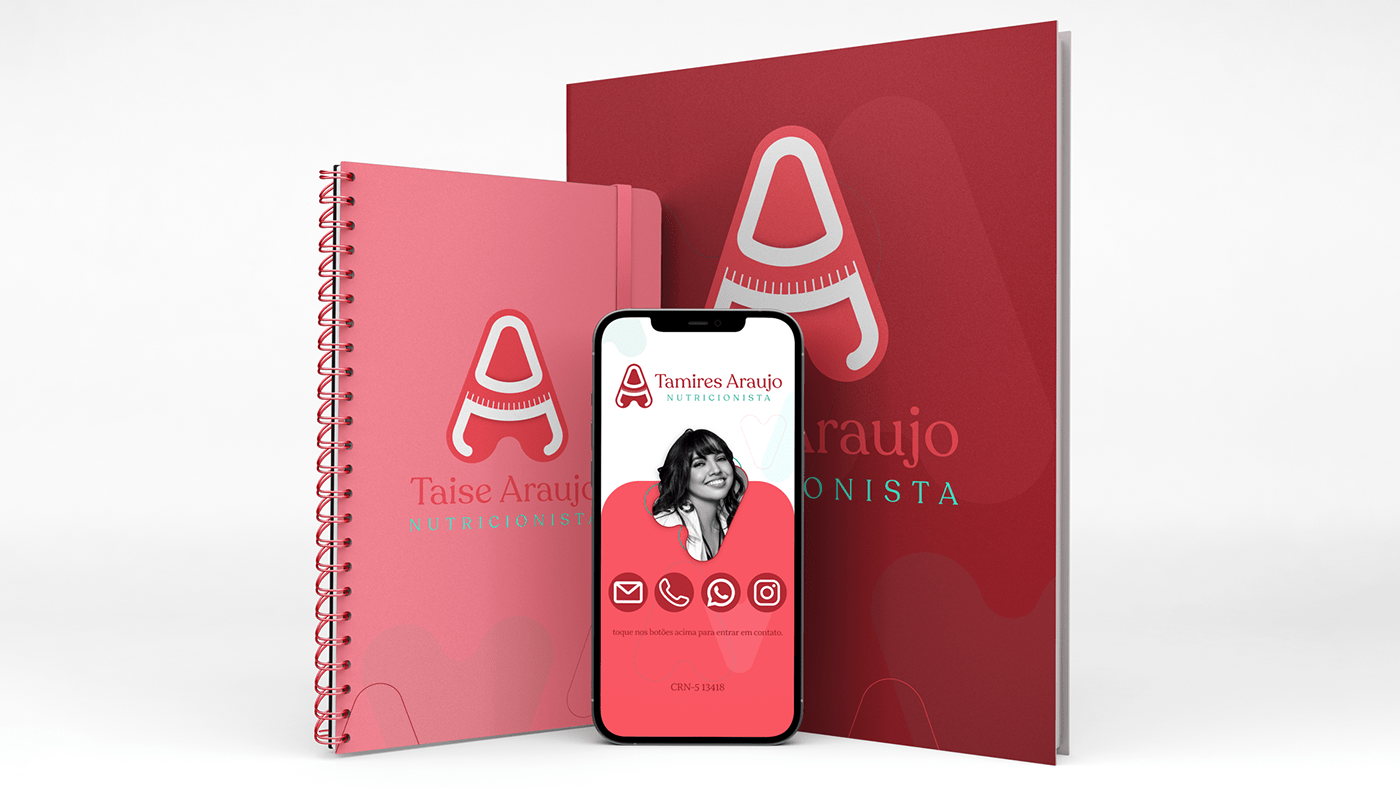 O conceito do logotipo foi desenvolvido a partir da inicial do sobrenome "A" (Araújo). A letra foi transformada em uma ilustração de um adipômetro, uma das principais ferramentas utilizadas por nutricionistas para medir a taxa de gordura corporal, conectando de forma criativa a identidade visual com o universo profissional das irmãs.